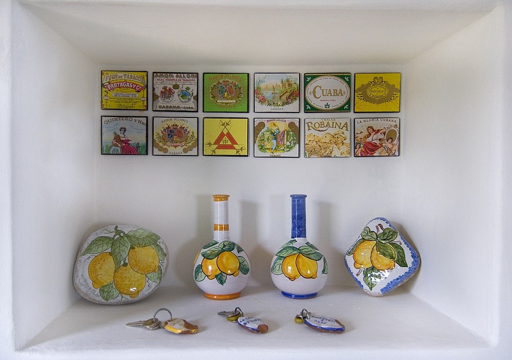 The entrance opens directly into a pleasant living room furnished with antiques, old furniture and sofas, from which you can enjoy a wonderful sea view.